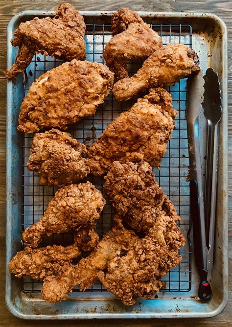 Once fried, remove the chicken from the oil and place it on a wire rack set over a baking sheet. This allows excess oil to drain and prevents the chicken from becoming soggy. Let the chicken rest for about 10 minutes before serving. This resting period helps the juices redistribute throughout the meat, resulting in more tender fried chicken.